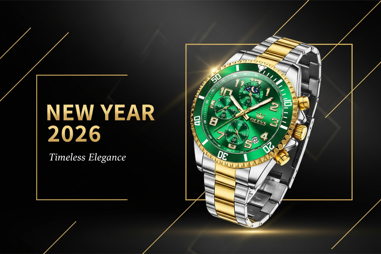 OLEVS Gold Men’s Chronograph Quartz Watch with Sun & Moon Dial