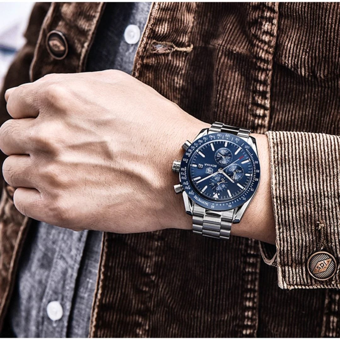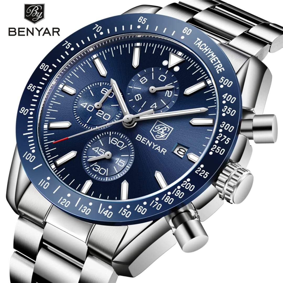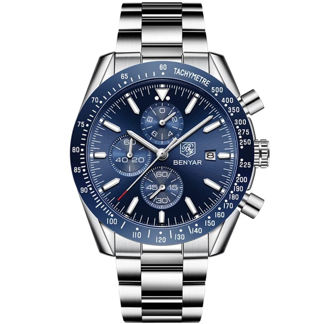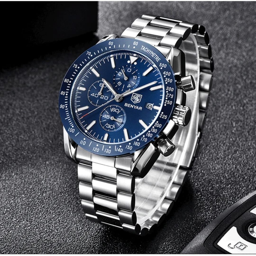 Upgrade your style with the BENYAR chronograph quartz watch. Featuring a bold blue dial, sporty design, and precision timekeeping, perfect for modern men in UAE.