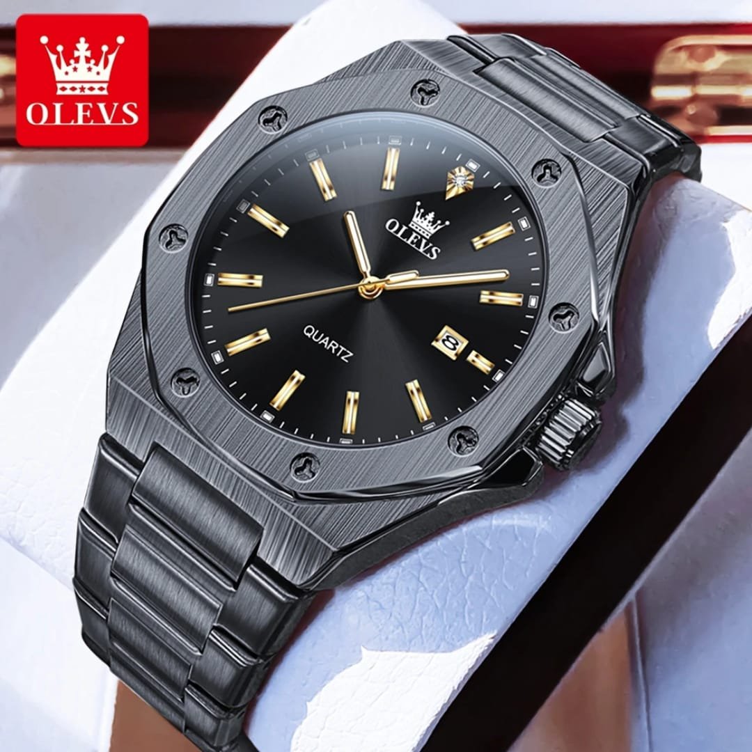 Fashion luxury OLEVS men’s watch with a refined gold stainless steel finish for business and everyday wear